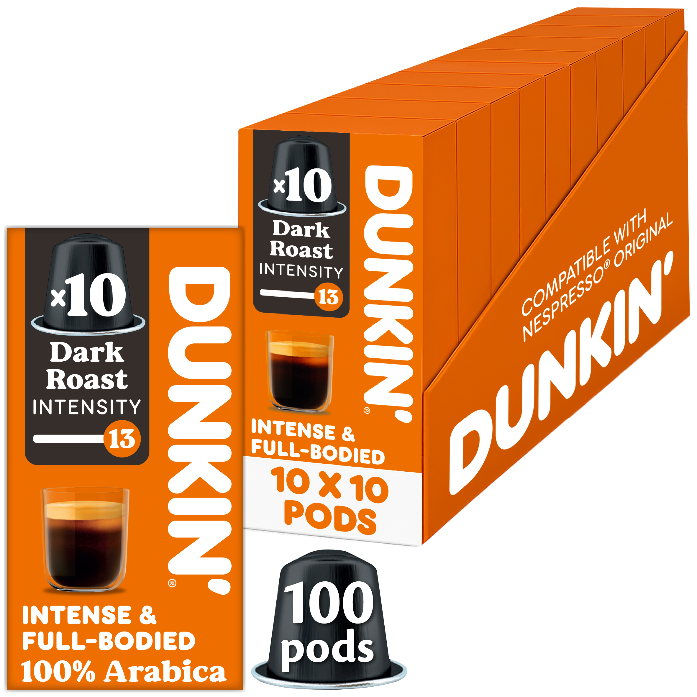Dunkin' Nespresso Compatible Capsules Dark Roast 10 x 10-count
