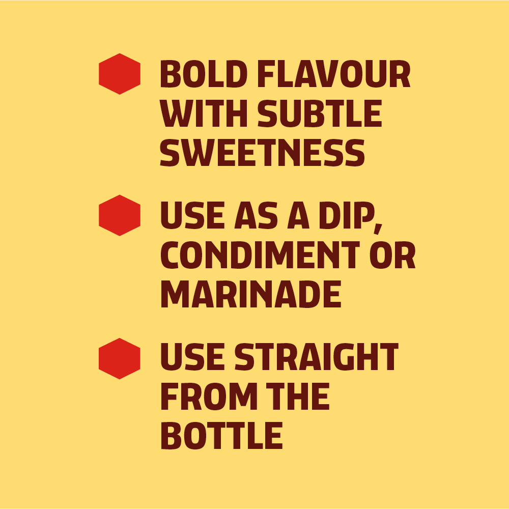 Combines the savoury Teriyaki flavour enhanced with honey to deliver the ultimate BBQ sauce